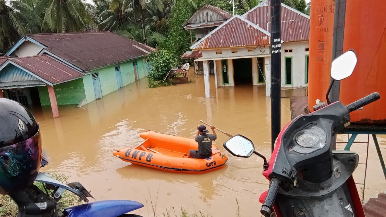 Rahmat Hidayat, Plt Kepala Pelaksana BPBD Bengkulu Tengah : Banjir luapkan Sungai Bengkulu genangi 55 rumah di Desa Taba Terunjam. BPBD Bengkulu Tengah sigap turunkan perahu karet evakuasi warga. Posko darurat siap lindungi masyarakat.-Foto : Dedi,Adv/klikinfoberita.com