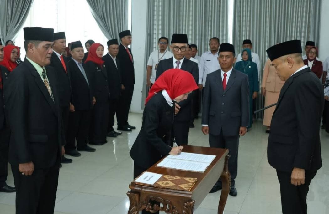Bupati Rachmat Riyanto lantik 66 pejabat sekolah di Pendopo Bukit Kandis. Mutasi birokrasi bawa energi baru, tingkatkan mutu pendidikan Bengkulu Tengah.-Foto : Dedi/klikinfoberita.com.