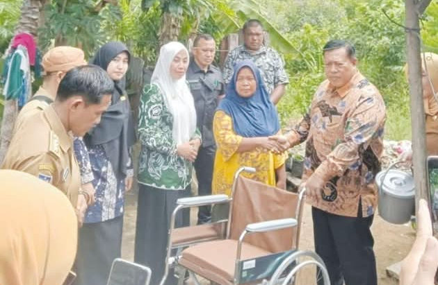 Bupati Mukomuko H. Choirul Huda serahkan 15 kursi roda dan 4 tongkat ketiak ke penyandang disabilitas. Wujud kepedulian nyata untuk mobilitas mandiri di berbagai kecamatan.-foto :Robi/klikinfoberita.com.