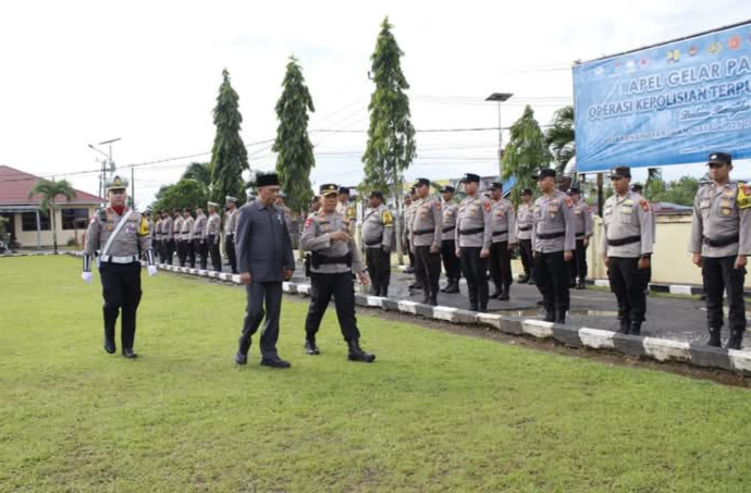 Kapolres Seluma, AKBP Bonar Ricardo P. Pakpahan,membacakan amanat Kapolri. “Gelar pasukan ini verifikasi akhir kesiapan personel dan peralatan. Hasilnya? Pelayanan keamanan Natal-Tahun Baru harus optimal, nol kecelakaan, nol korban,” tegasnya.