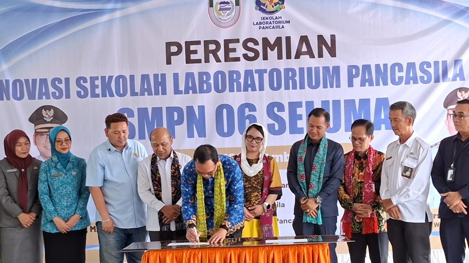 Bupati Seluma Teddy Rahman didampingi Senator DPD, Prof Warsito, dan pejabat hadir meresmikan Sekolah Laboratorium Pancasila di SMPN 6 Seluma, menjadi pilot project pendidikan karakter.-foto:hery/adv/klikinfoberita.com.