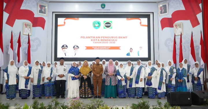 KLIKINFOBERITA.COM,-Pelantikan Pengurus Badan Kontak Majelis Taklim (BKMT) Kota Bengkulu periode 2025-2030 resmi digelar pada Selasa (9/12/2025) di Balai Kota Merah Putih. Acara ini menandai langkah baru dalam penguatan peran organisasi perempuan yang fokus pada pembinaan keagamaan dan sosial di masyarakat.
