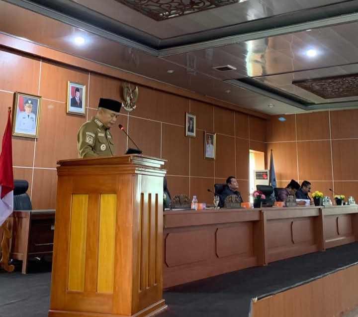 Bupati Rahmat Riyanto membacakan pidato pengantar secara langsung, menandai kickoff pembahasan anggaran daerah di tengah tantangan fiskal nasional. Penurunan drastis Dana Transfer Daerah (TKD) dari pusat menjadi isu utama yang ditekankan.