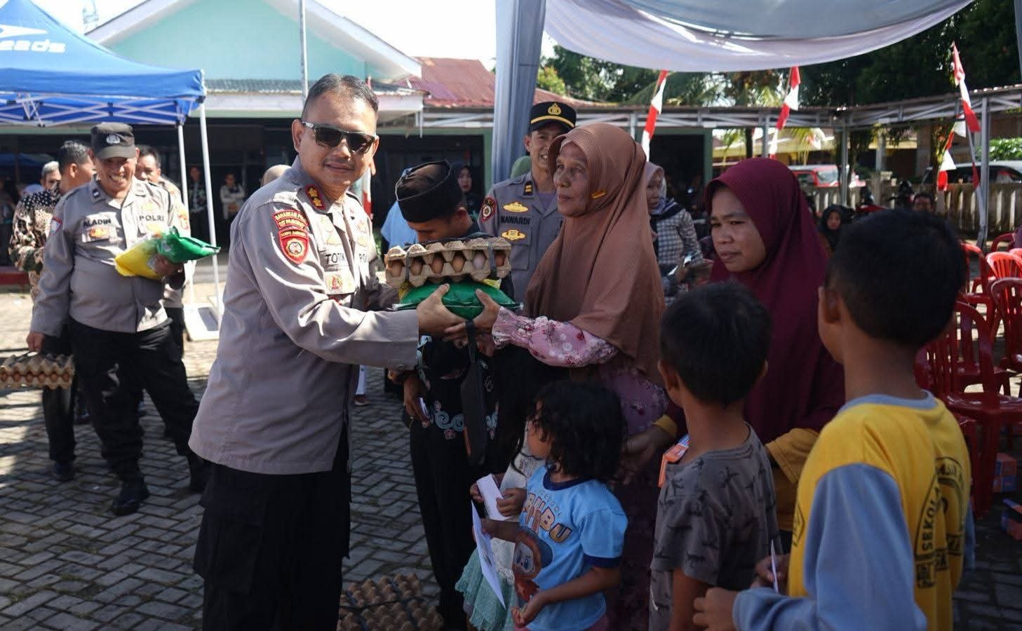 Kapolres Benteng, AKBP Totok Handoyo SIK : bersama aparat dan Pemda membagikan sembako murah di Karang Tinggi. Gerakan ini bantu jaga harga dan ketersediaan bahan pokok masyarakat.(Poto : An)