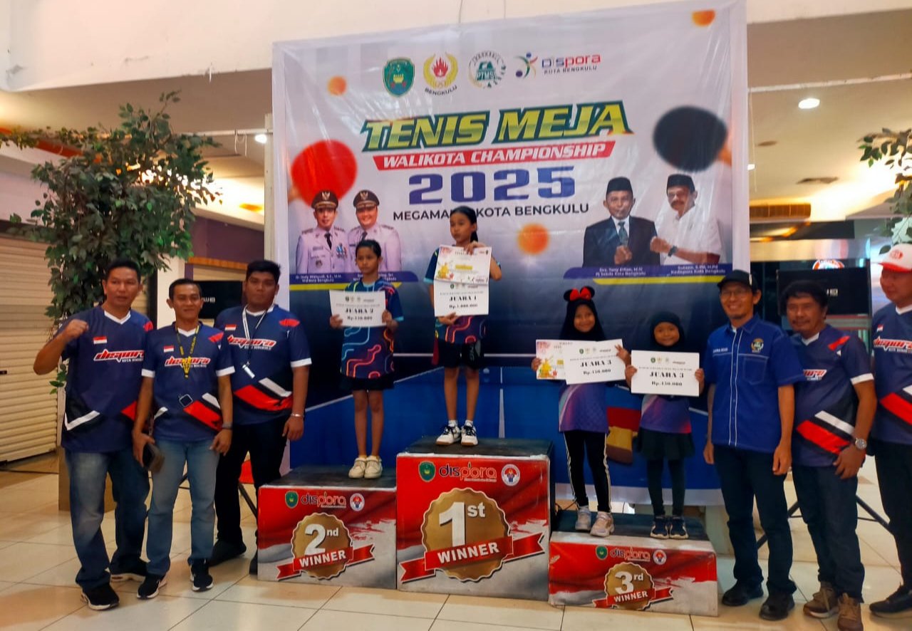 Prestasi membanggakan kembali ditorehkan SDN-07 Kota Bengkulu. Syaqila Evellyn Putri Gunawan, LaLa, sukses juara 3 Lomba Tenis Meja Wali Kota Championship tingkat SD se-Kota Bengkulu. Semangat dan kerja kerasnya menginspirasi.-foto:man/klikinfoberita.com.